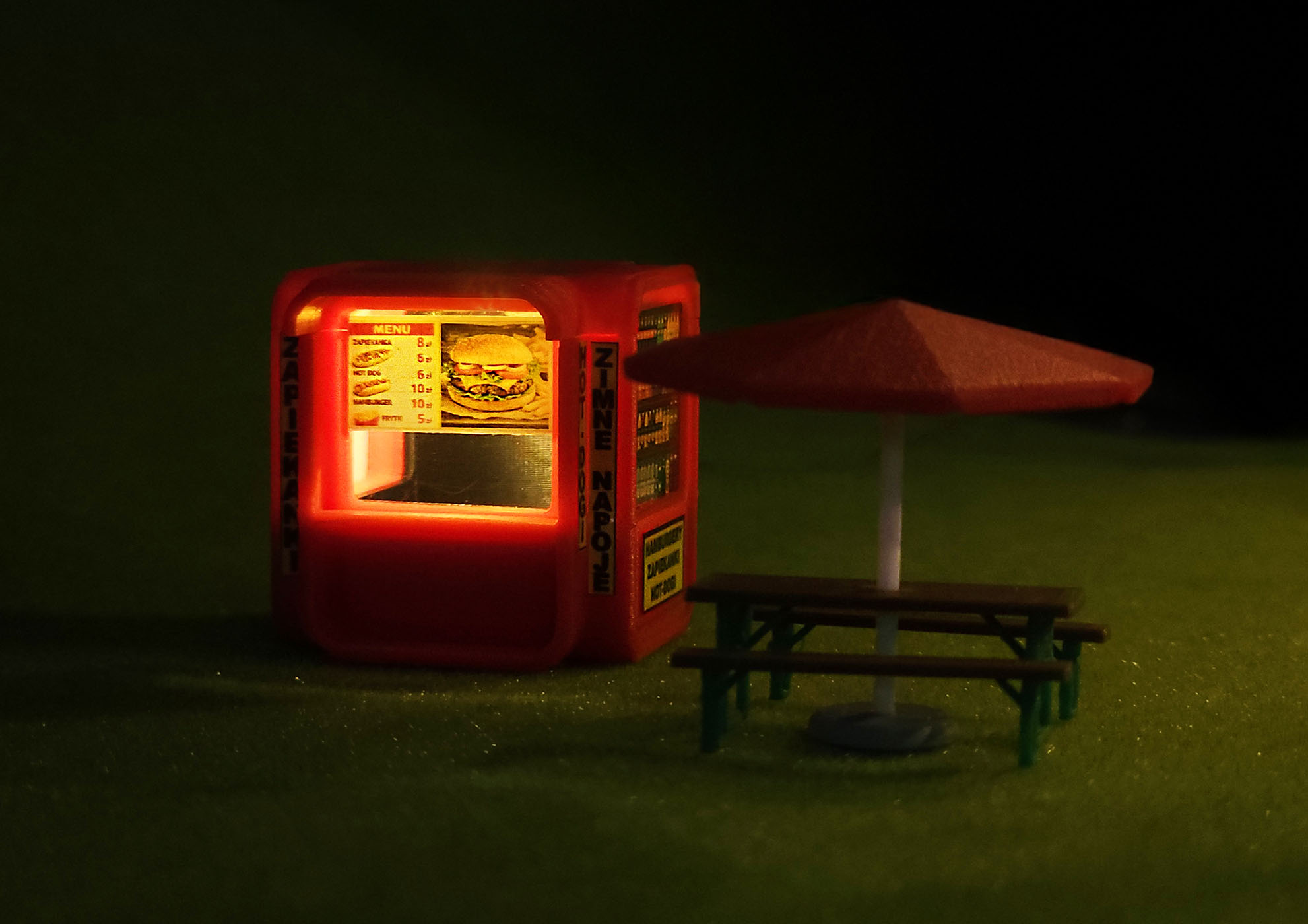 Model kiosku gastronomicznego K-67 – charakterystycznej budki znanej z wielu polskich miast od lat 60. XX wieku. Tego typu kioski były powszechnie wykorzystywane jako małe punkty gastronomiczne, budki z zapiekankami, hot-dogami czy napojami.