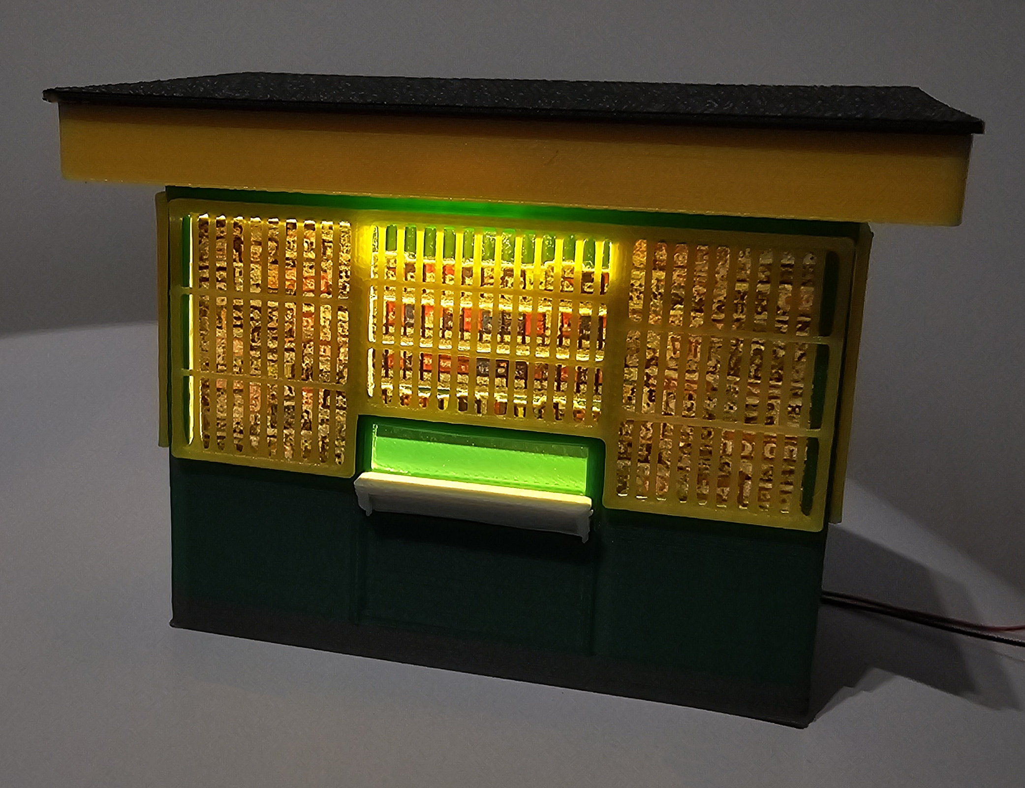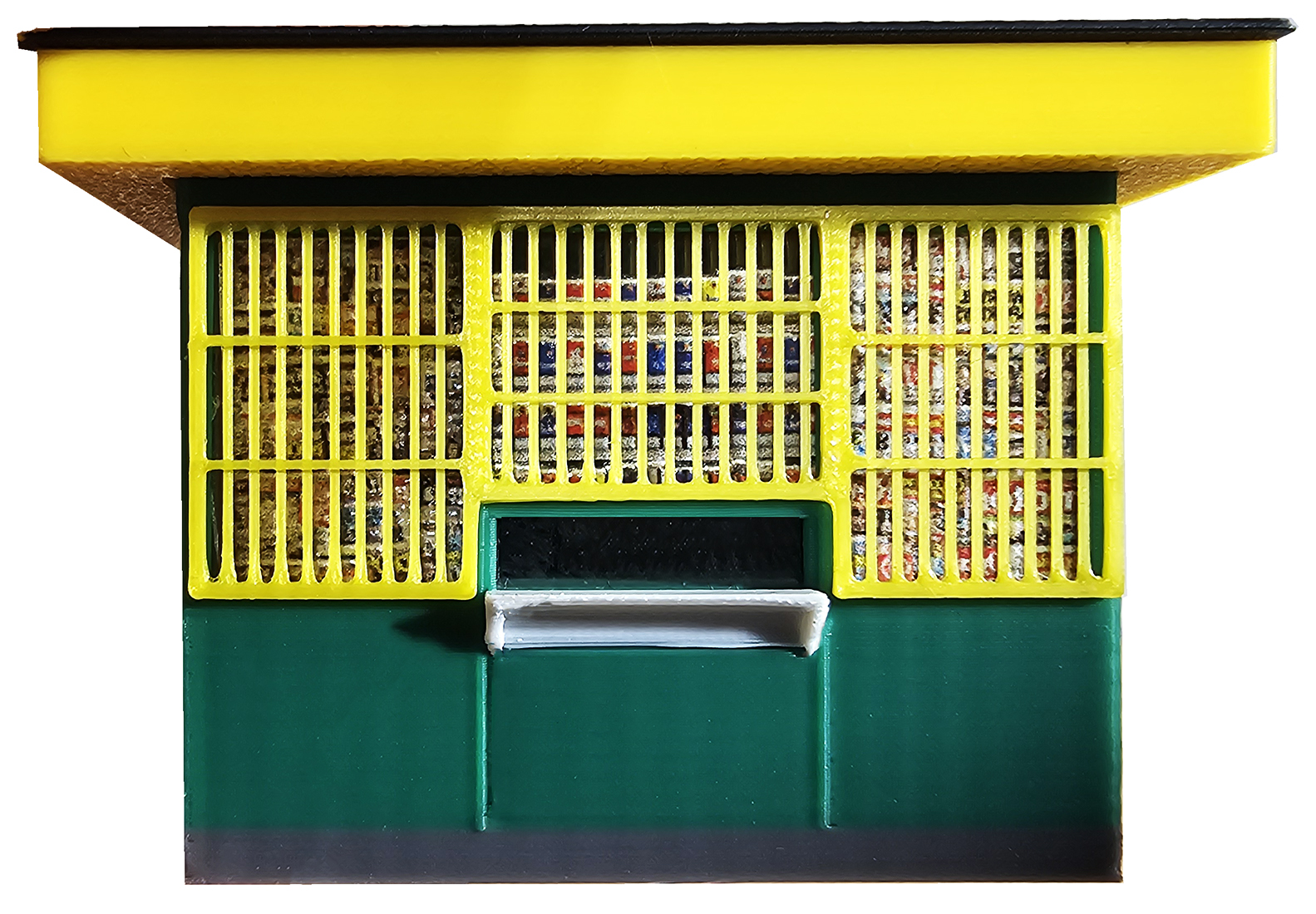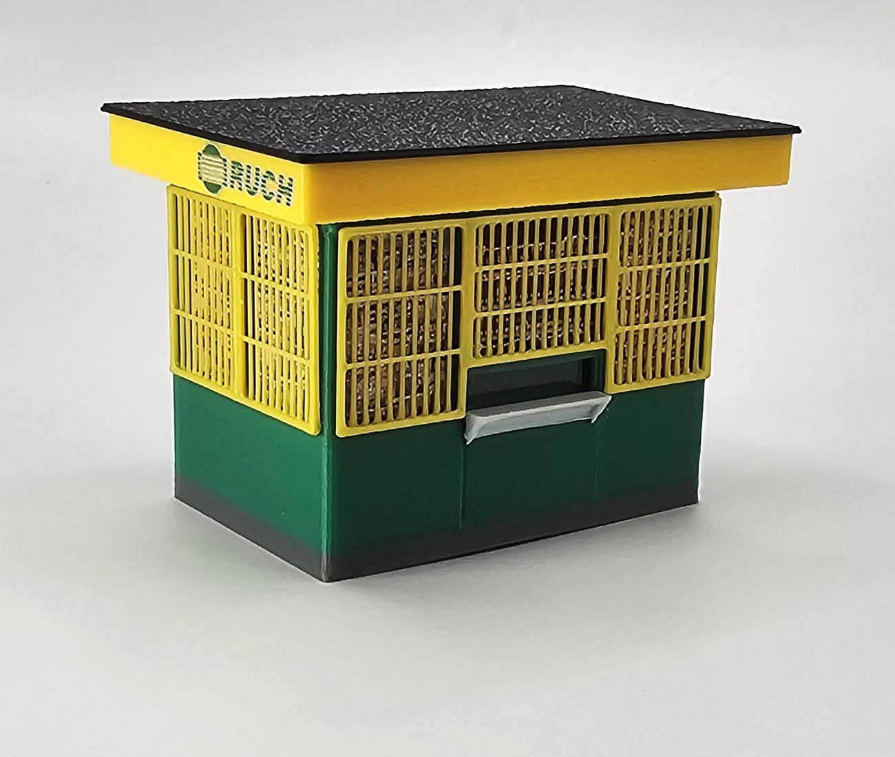 Model kiosku RUCH w skali H0 (1:87), przeznaczony do makiet kolejowych oraz dioram miejskich. Konstrukcja inspirowana klasycznymi kioskami znanymi z polskich dworców, ulic i osiedli z końca XX wieku. Wyposażony w zintegrowane oświetlenie LED, które znacząco podnosi realizm scen nocnych i wieczornych.