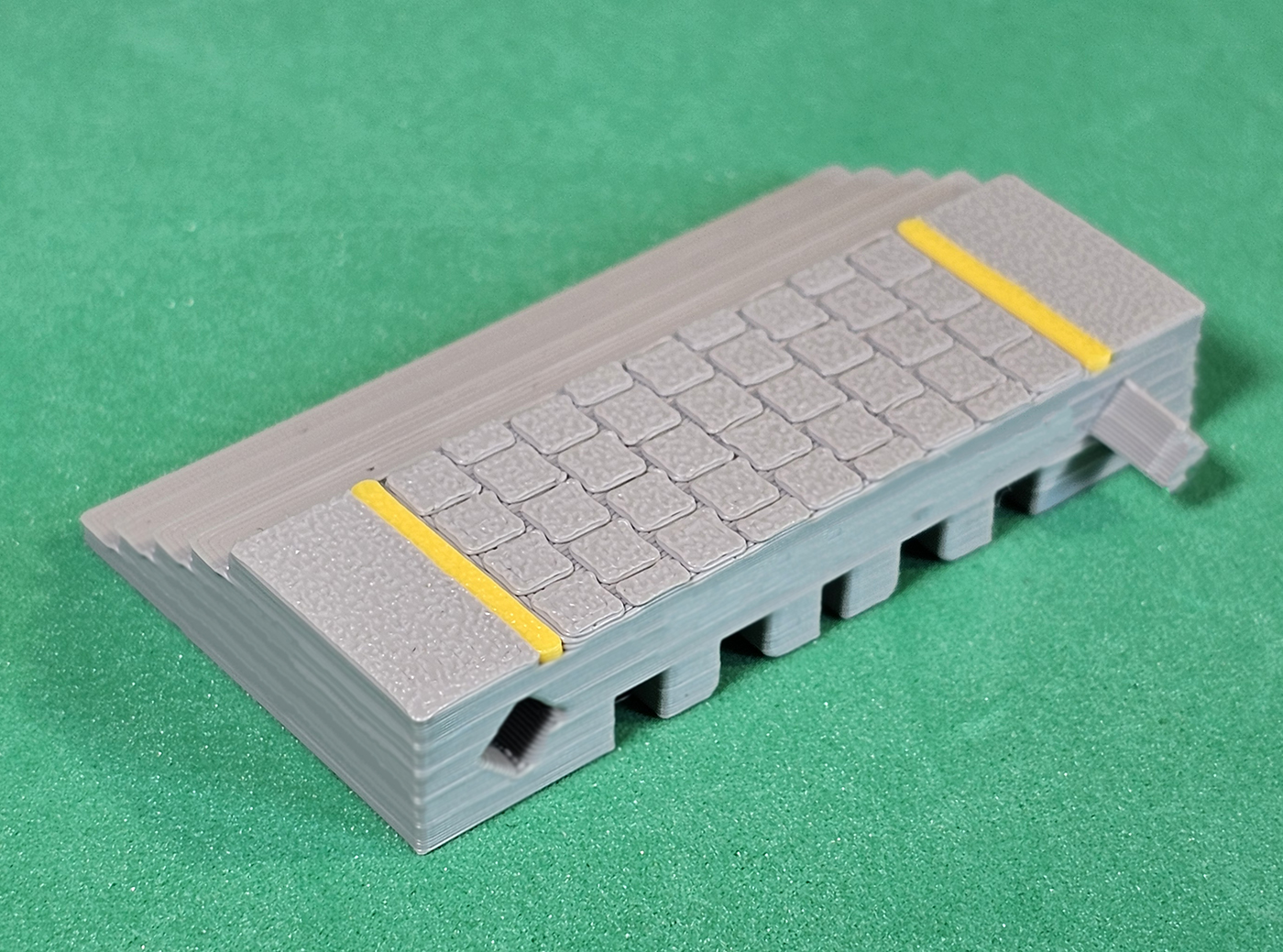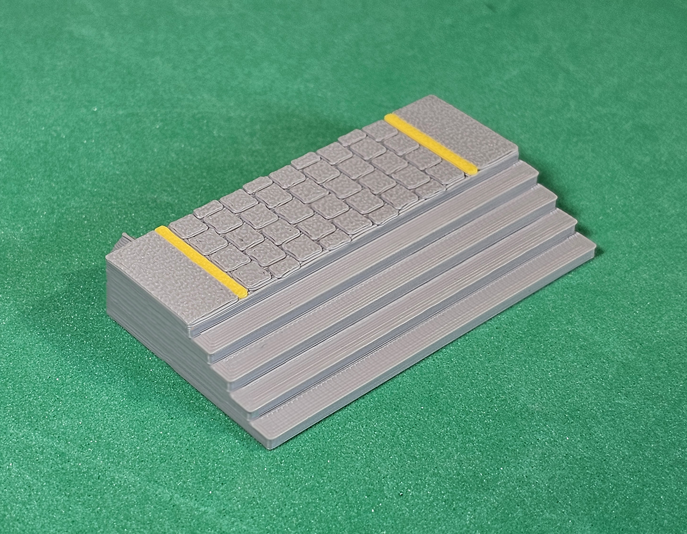 Element pozwala estetycznie zakończyć peron wyspowy oraz dodać realistyczne zejście z poziomu peronu, inspirowane klasyczną infrastrukturą kolejową spotykaną na polskich stacjach i przystankach.