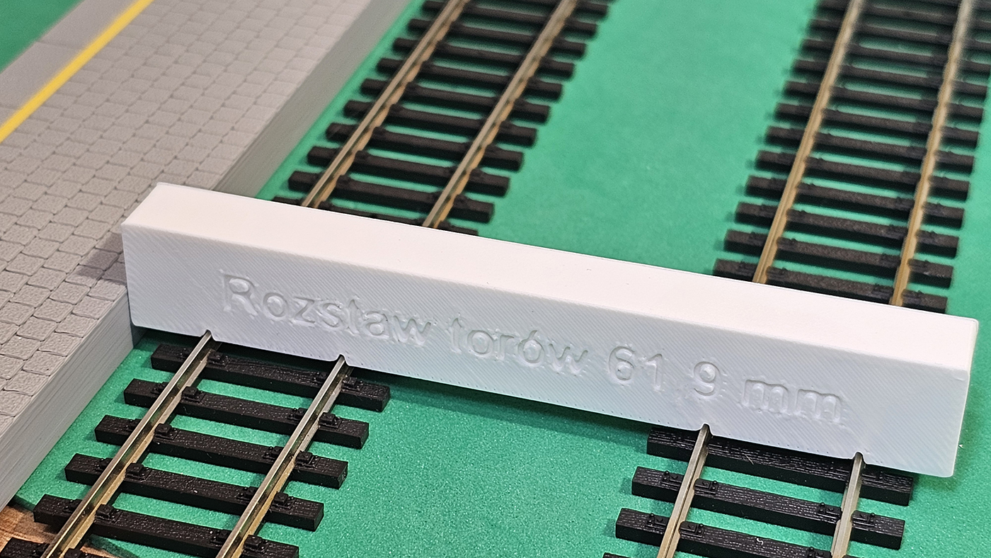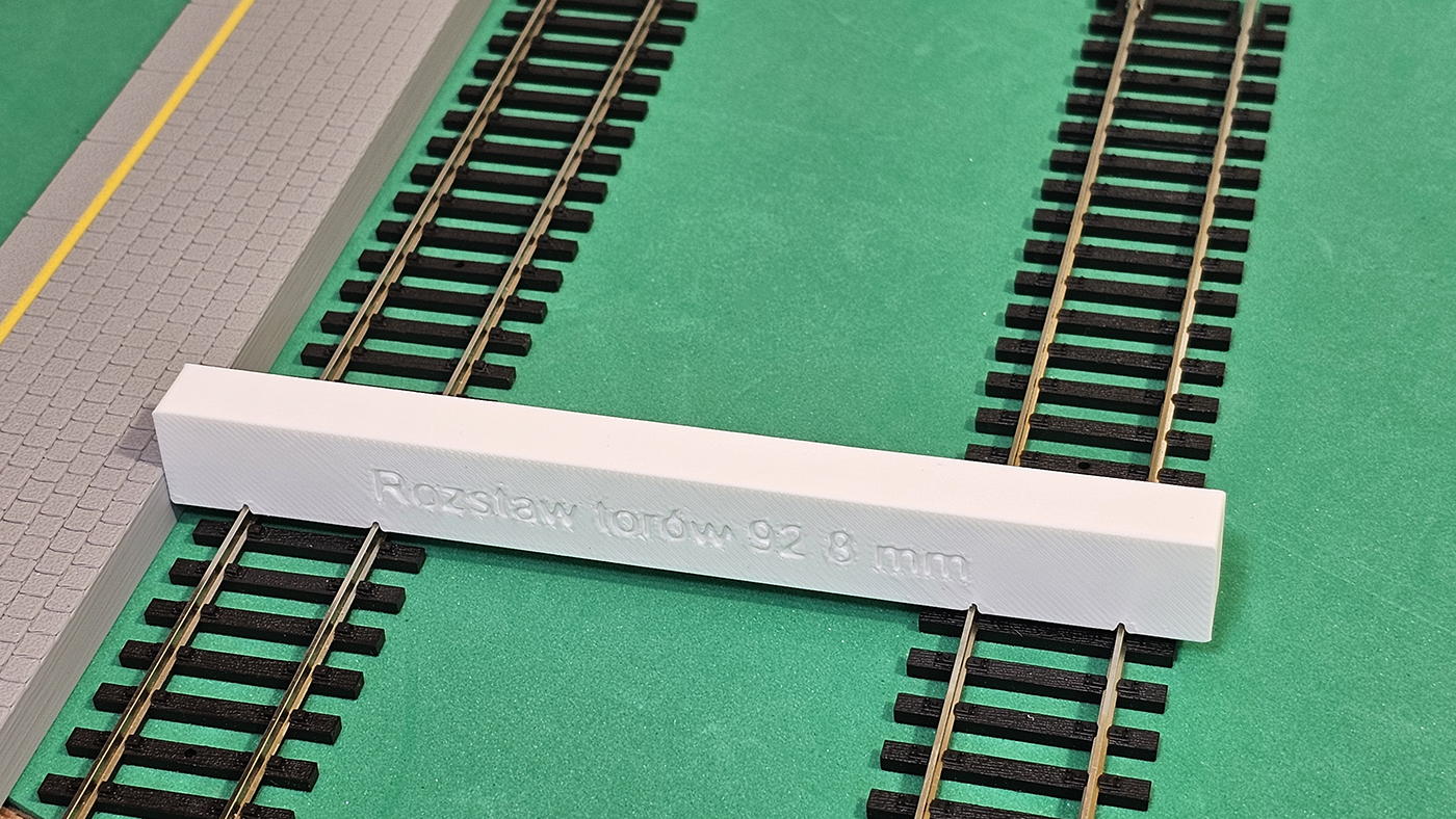 Ustawiacz pozwala w prosty sposób zachować prawidłowy rozstaw torów oraz odpowiednie położenie peronu względem toru – bez użycia linijki, suwmiarki i „ustawiania na oko”.